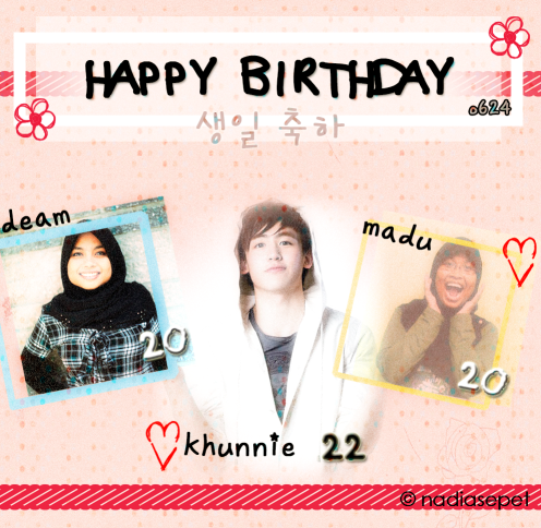 back to my wishes to them. to both deam and madu, i hope we'll friend till whenever. and to khunnie, this might be dream come true if you ever read this post of mine. HAHAS. ouh, please come to Malaysia, will ya? a fanmeeting will do ;) enjoy your birthday to the max okay. lastly, I love you guys ♥